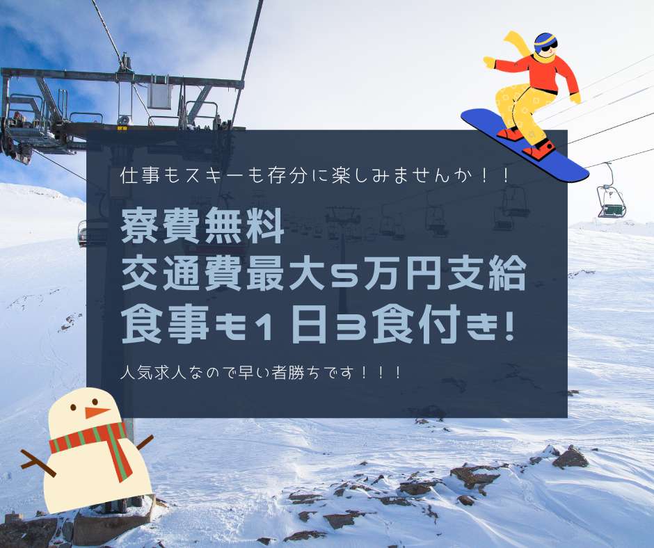 【食費・水光熱費無料】【無料リフト券&無料レンタルあり】【リフト数&パーク充実】【無線LAN環境あり】【女性寮は先着で個室寮あり】【平日毎日無料買い物バスあり】