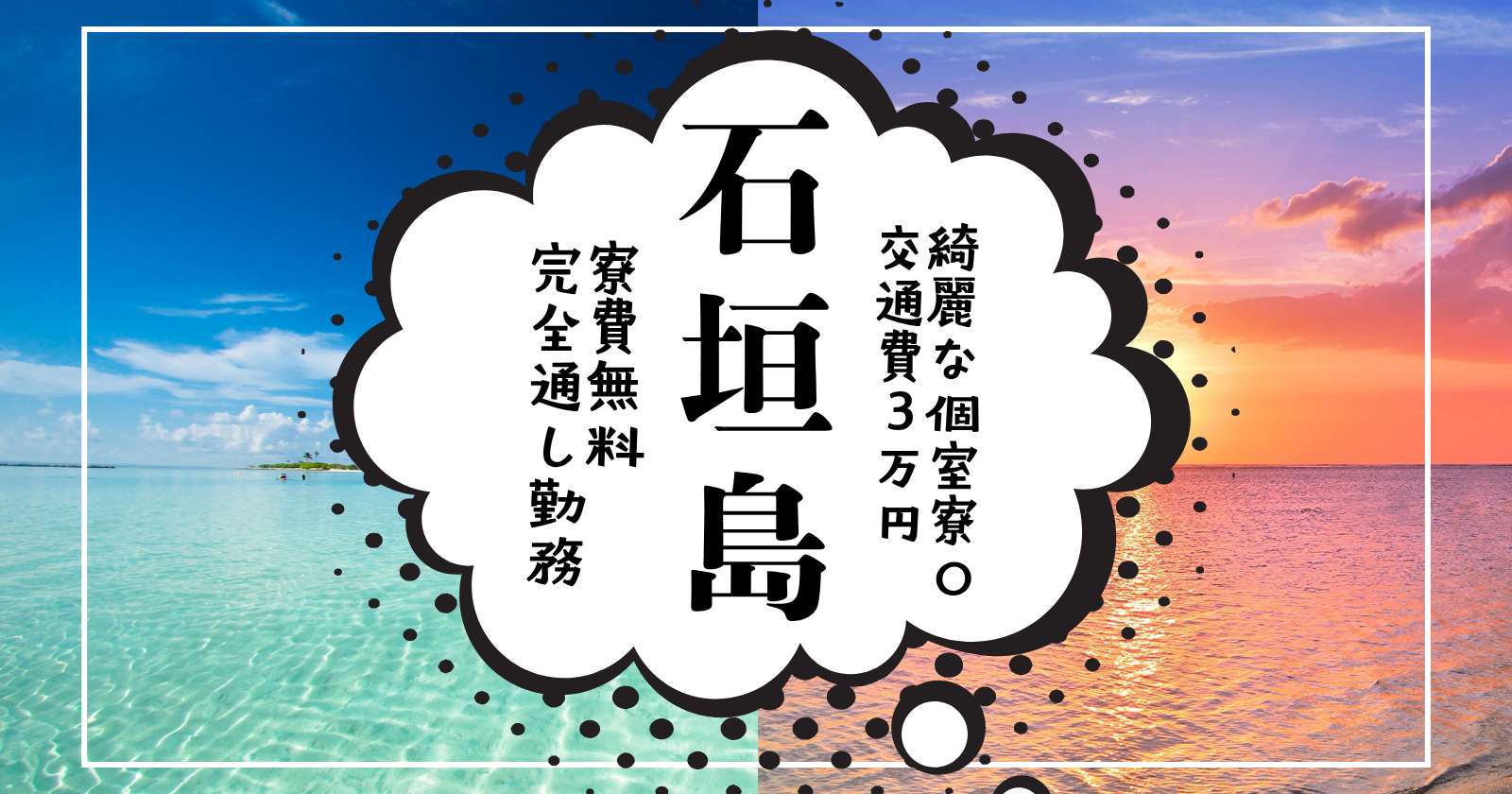 - 寮完備(寮費、水光熱費無料、Wifi完備)、 お食事支給有り、無料マリンスポーツ体験付き、髪型自由、タトゥー可、 沖縄本島まで約35分のフェリーも出てます(有料)