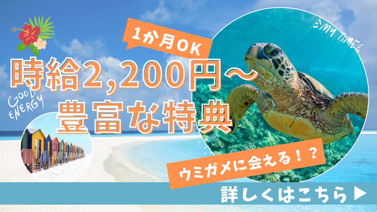 《短期1か月~OK》【離島でのお仕事 × 高時給2,200円~ × 未経験大歓迎】ウミガメと120%あえる徳之島で超高時給のお仕事です!