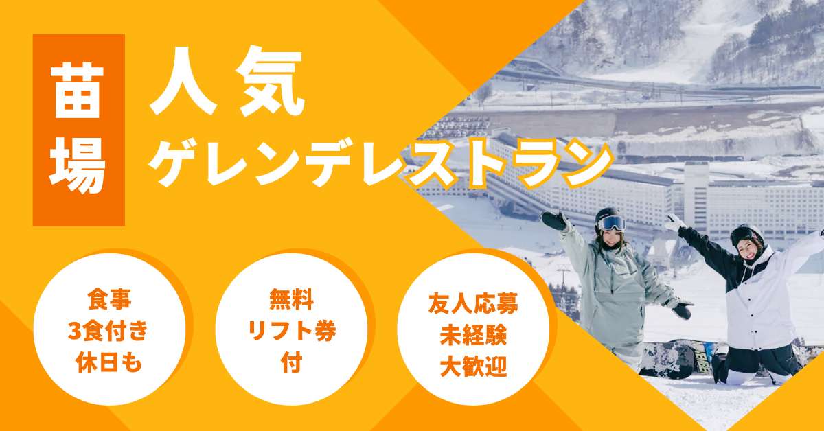 - 個室寮あり・寮費・食費・水光熱費無料・お車バイク持ち込み可・交通費支給・給与前払い制度有・施設内温泉入浴可、Wi-Fi利用可・リフト券(冬季・休日のみ)・レンタル無料