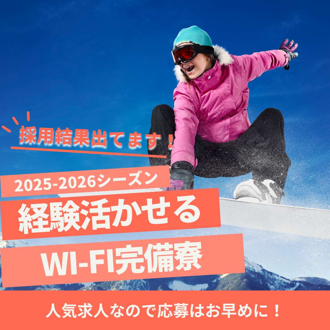 【高時給/リフト券無料友人同士歓迎/寮費・水光熱費無料/Wi-Fi完備】
