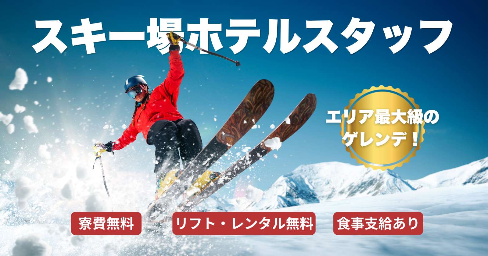 - 寮費無料・友人同士相部屋歓迎・水光熱費無料・WIFI完備・赴任交通費支給(規定有)・リフト券無料支給・レンタル無料・給与前払い制度・友人同士応募可能・食事支給あり・2カ月以上の就業期間で50円アップ