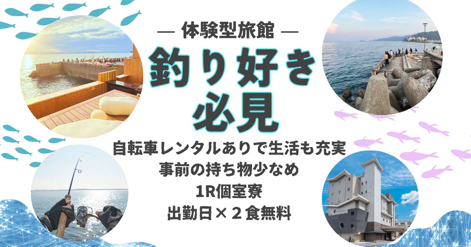 - 1R個室寮完備・寮費無料・水光熱費無料・食費無料(出勤日×2食)・弊社規定往復交通費支給有り(上限20,000円)・給与前払い制度有・自転車貸し出し・釣り具貸し出し可能