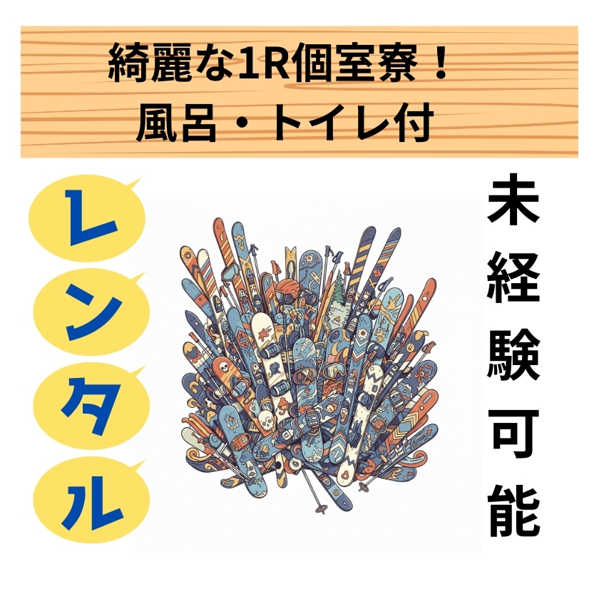 - リフト券無料、スキースノーボード用品貸し出し有※数に限り有、温泉施設無料利用可能 寮完備、水光熱費無料、食事支給(有料)、各種保険完備