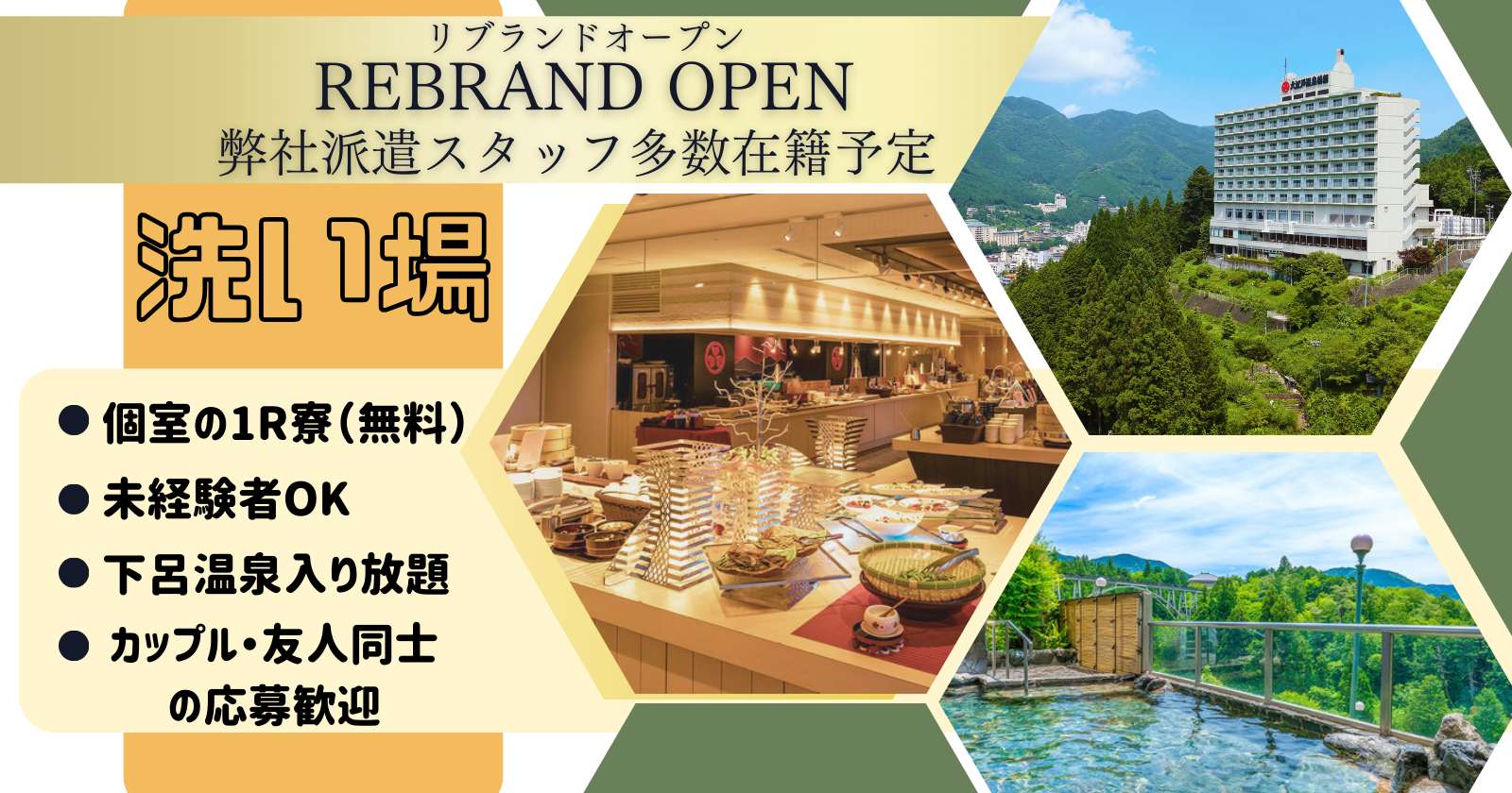 ▼ 毎日温泉&まかない三昧! カップル・友人同士OK!大量募集中!