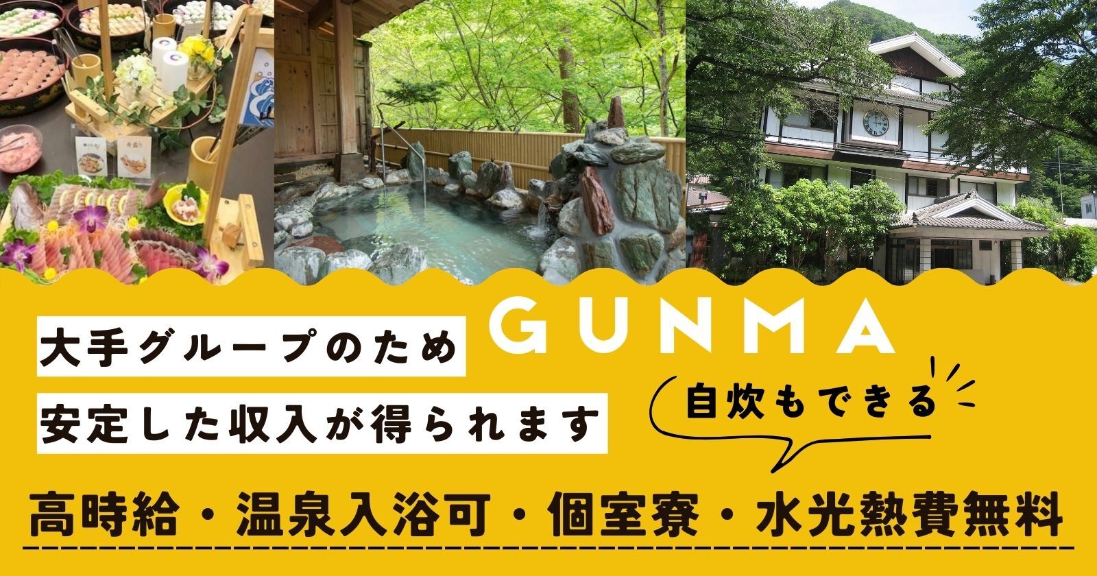 ※勤務地は草津温泉が主になります。また草津近郊の温泉地でも仕事はあります。