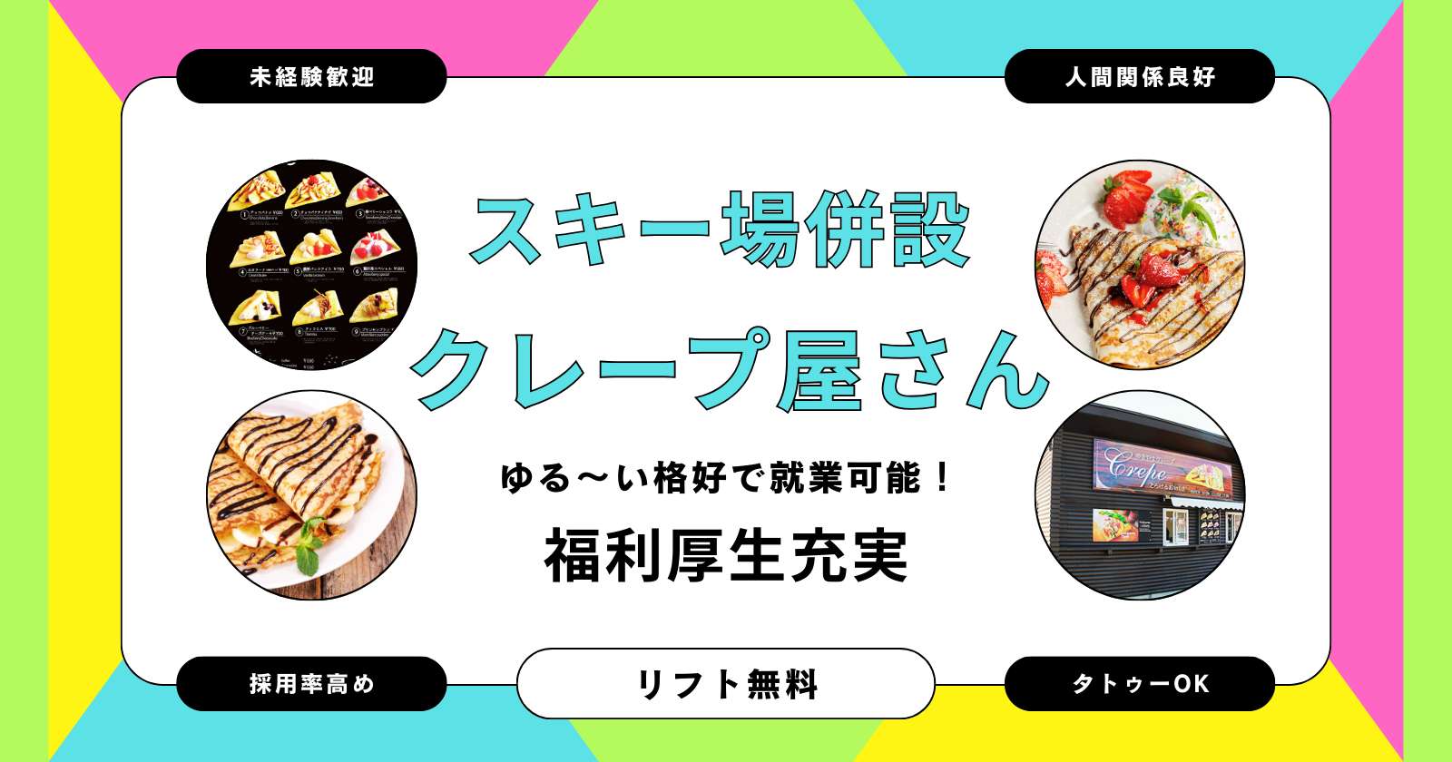 - 個室寮完備、寮費無料、近隣スキー場リフト券無料(規定あり)、スノーレンタル無料、交通費支給、水光熱費無料、施設内大浴場利用可、車持ち込み可、WIFI有り、制服支給有、