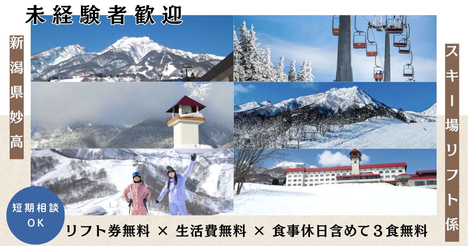 【未経験でも採用率高め!】【リフト券無料!】【食事も3食無料!】
