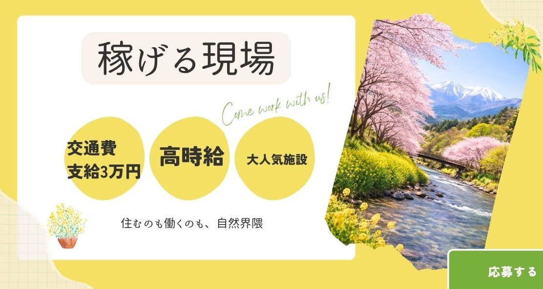 【フィットネスジムや温泉プールも利用可能】【1R個室寮】【ガッツリ稼げる求人です】