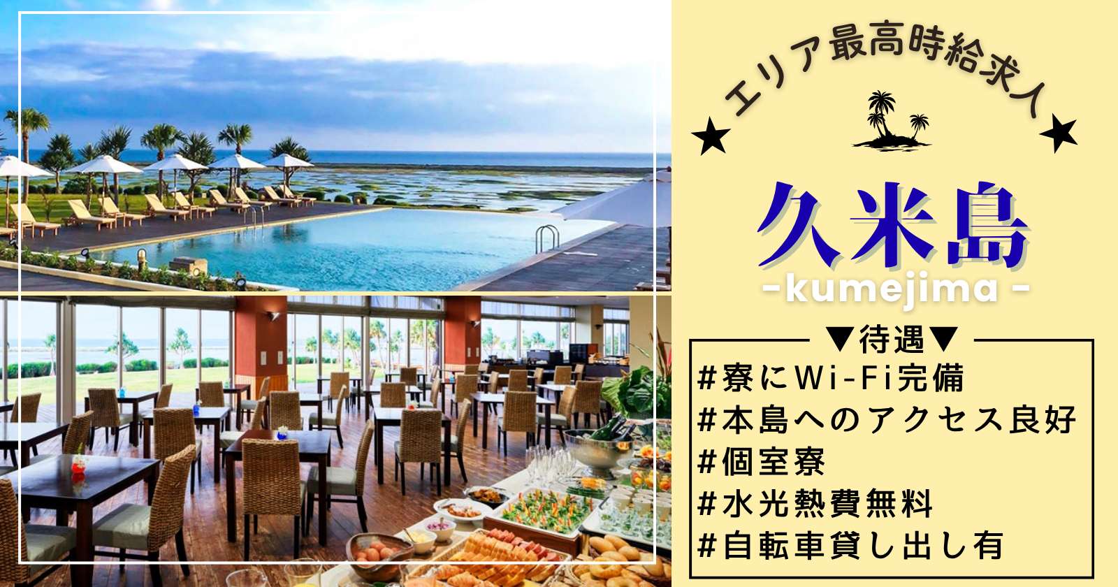 久米島内の求人で最も時給が高く、ホテル自体も最も高級な施設です!