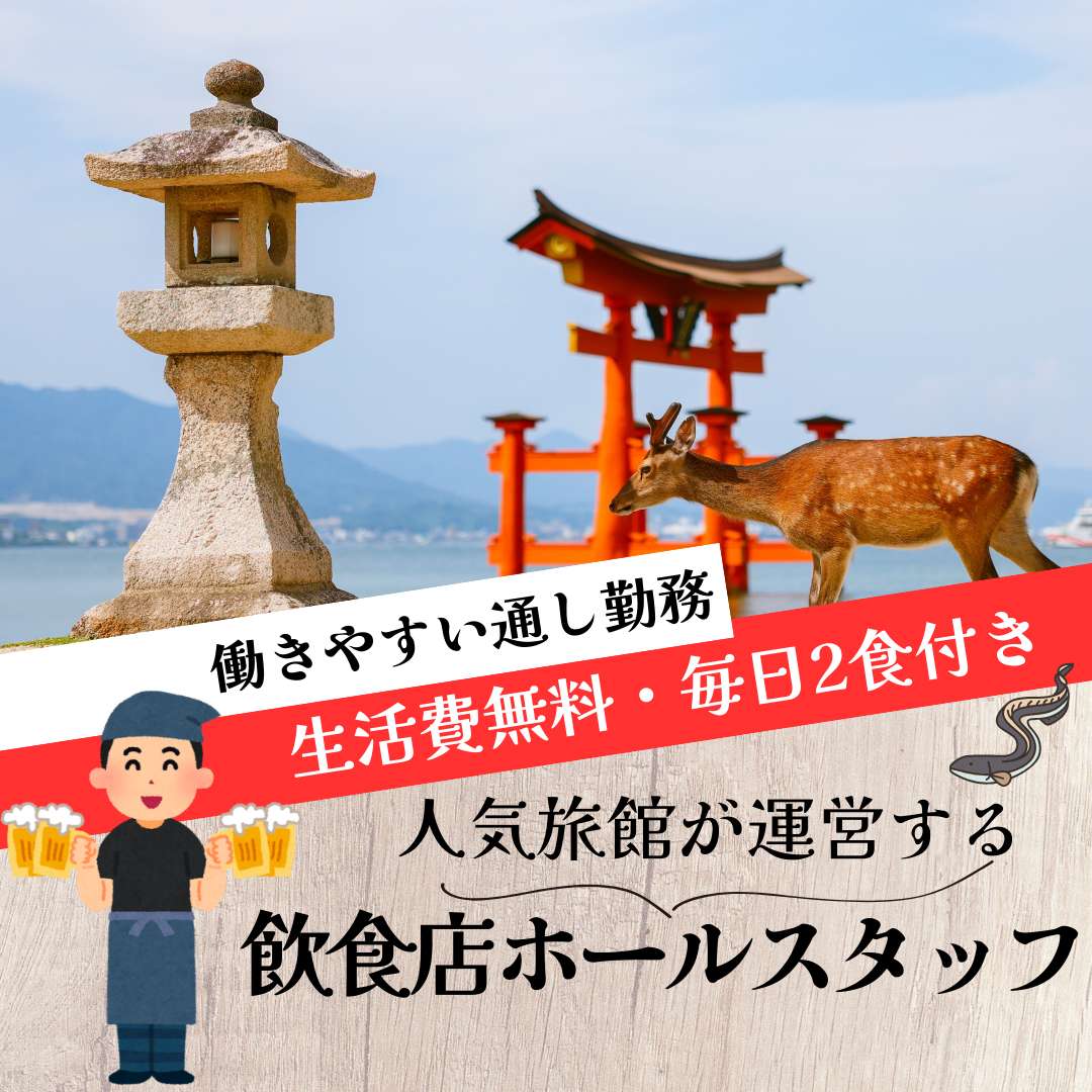 ・昼は宮島名物あなご飯をはじめとした定食等のご提供や接客。夜は居酒屋をイメージしていただければと思います。洗いものヘルプもございます。
