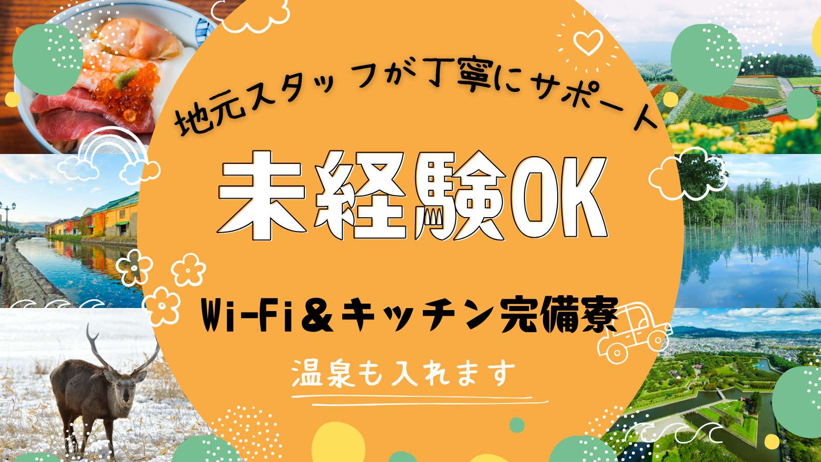 - 寮完備、水光熱費無料、交通費規定内支給、制服付与、給与前借制度有、スキーリフト券無料、スキースノボ一式レンタル無料、グループ施設スキー場優待利用可能