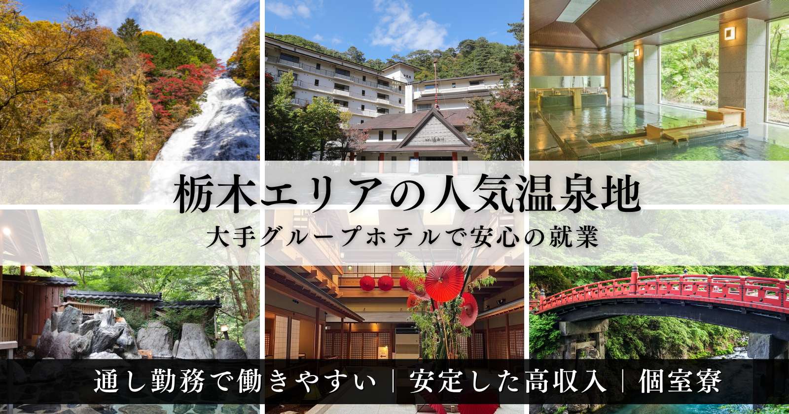 栃木エリアの人気温泉地でナイトフロントのお仕事!安心の【大手グループホテル】【Wi-Fi完備の個室寮】【職場環境◎】の求人!