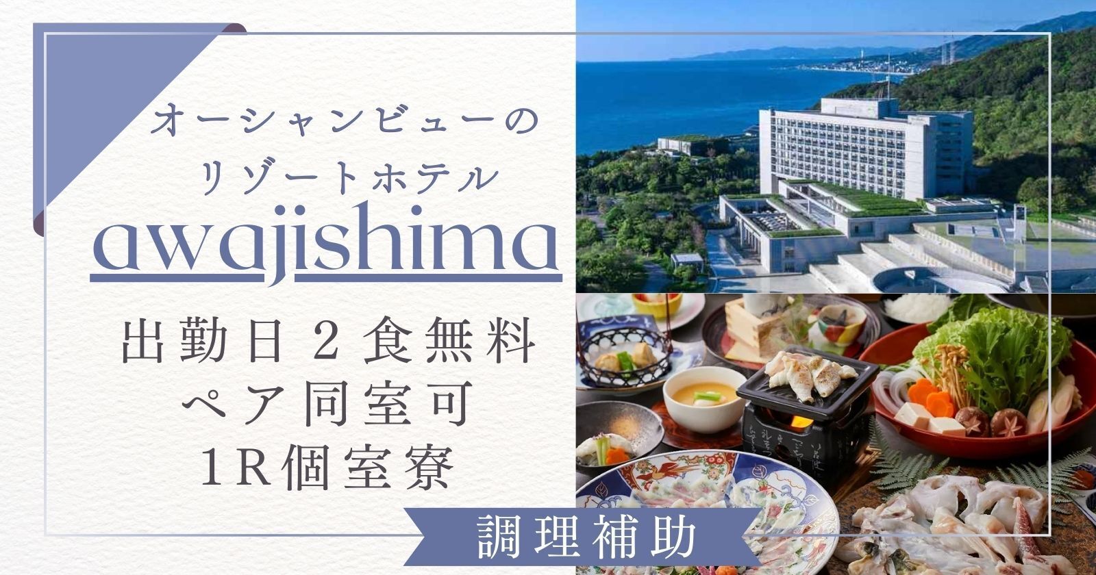 海の見える施設!【同室可能・毎日食事2食無料・キッチン経験のある方大歓迎】好条件で働きたい方必見です!