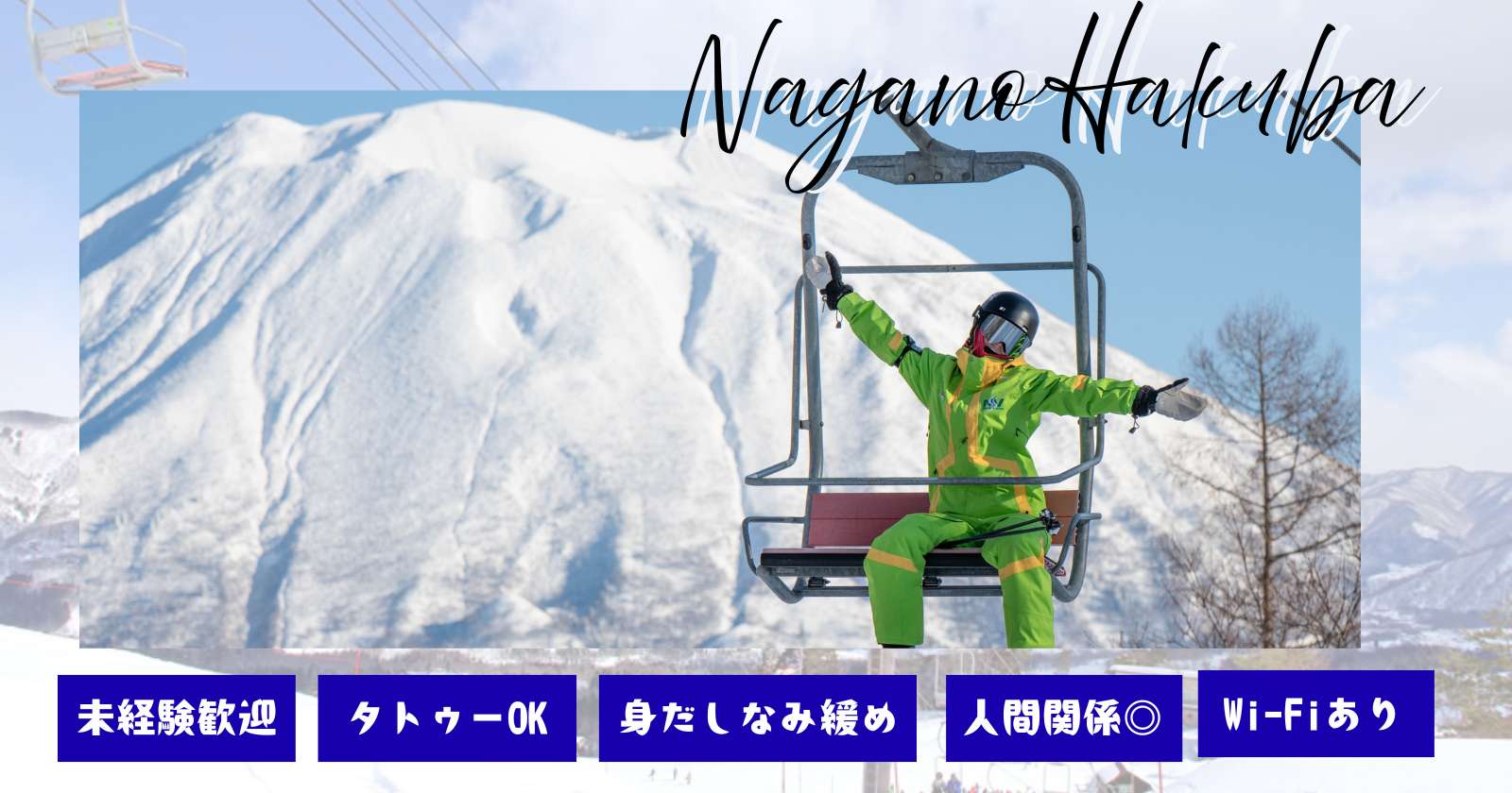 - ・WIFI完備・食事毎日×3食支給有り・水光熱費無料 ・往復交通費支給有り(期間満了者のみ、住んでるエリアによって金額決定)・リフト無料・その他福利厚生有り・温泉利用可