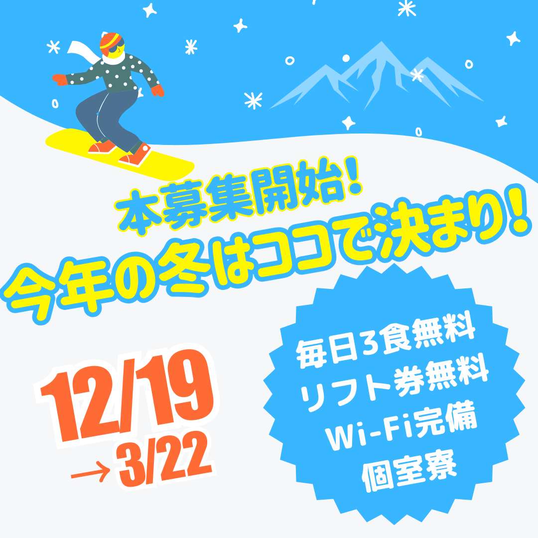 【個室寮・Wi-Fi完備・食事3食無料・リフト券無料!】