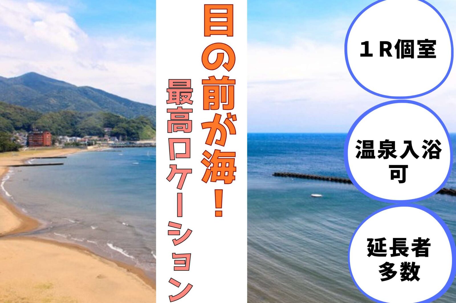 海が目の前に広がる宿でのお仕事。最高のロケーションで温泉に入れます!!