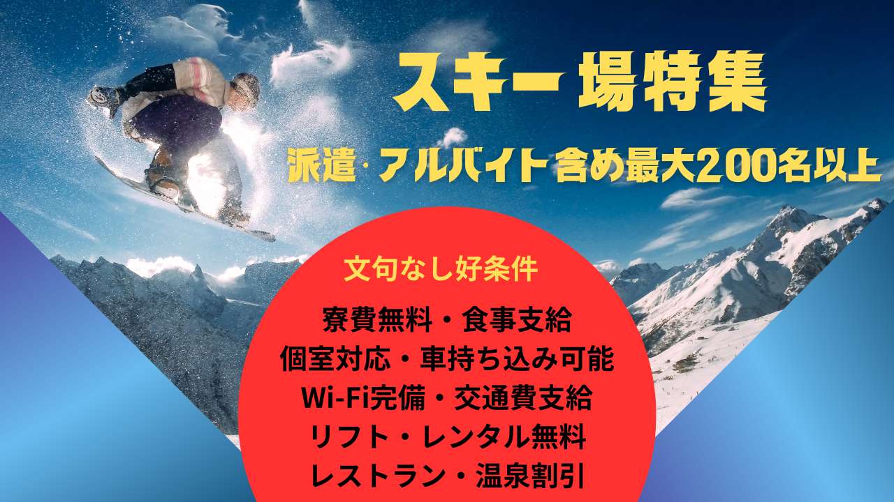 - 個室寮完備・寮費無料・水光熱費無料・食事支給有り(規定有り)・弊社規定往復交通費支給有り(上限20,000円)・給与前払い制度・施設割引き有り・部屋内WIFI完備・リフト券無料・レンタル無料・無料送迎バス利用可能