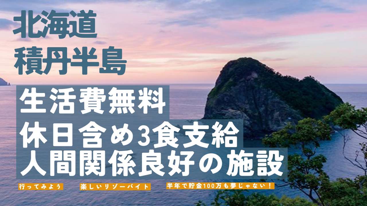 - 住居の家賃無料(Wi-Fiあり) 水道光熱費無料 休日も含め3食無料 岬の湯しゃこたんや、町内に本社を置く観光船やシーカヤックなどのアクティビティ事業者の一部利用補助あり、自家用車持ち込み可、4カ月以上勤務の方は雇用保険加入あり、(健康保険と、厚生年金の加入は無し)
