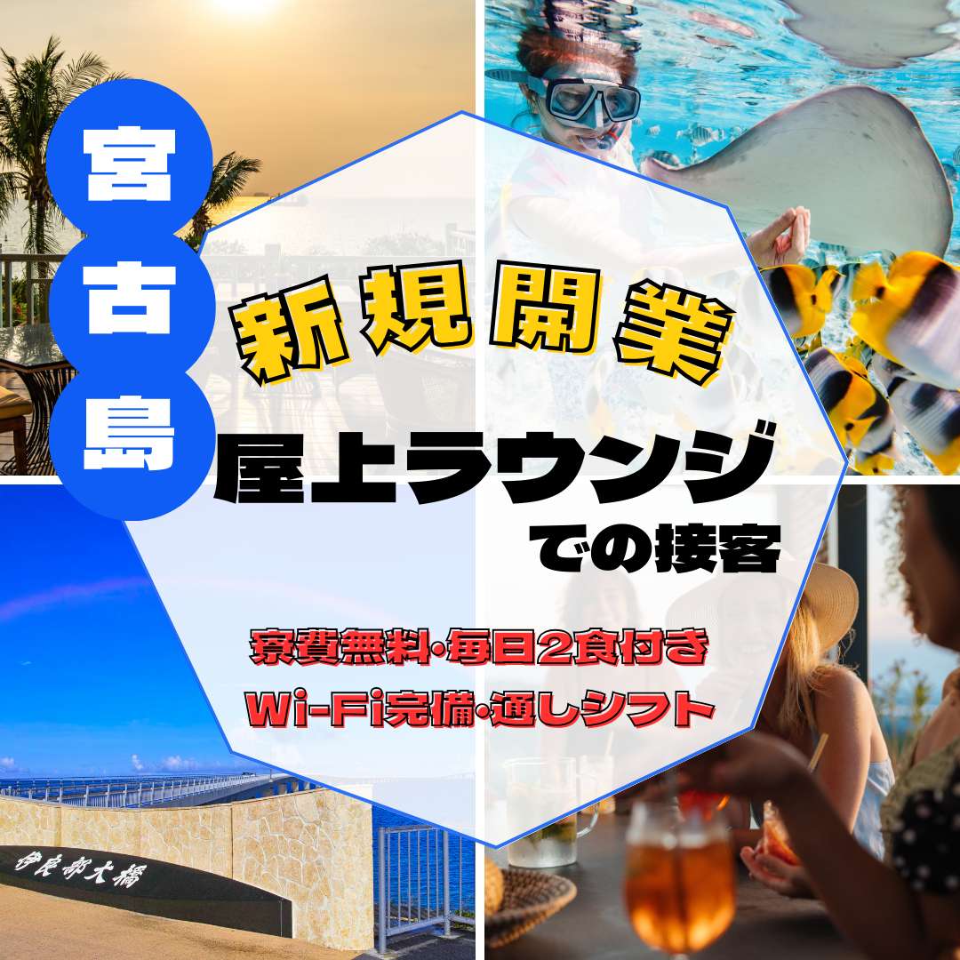 【入店祝い10万円】大人気の沖縄県宮古島でのお仕事!人気の個室寮完備!友人同士可!