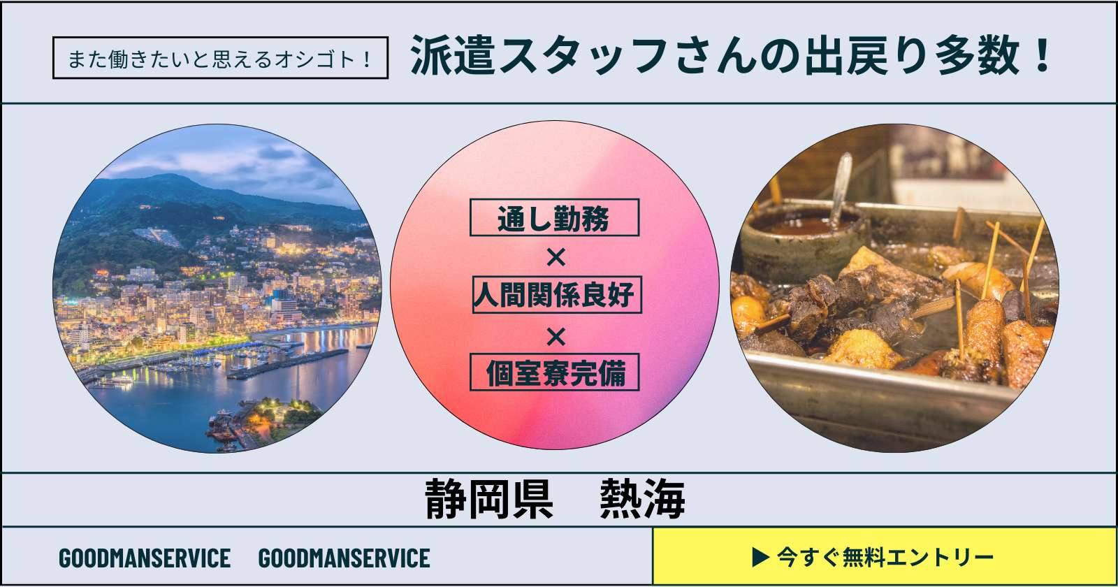 観光を楽しみたい方やグルメを楽しみたい方にも満足頂ける静岡県の求人となります!