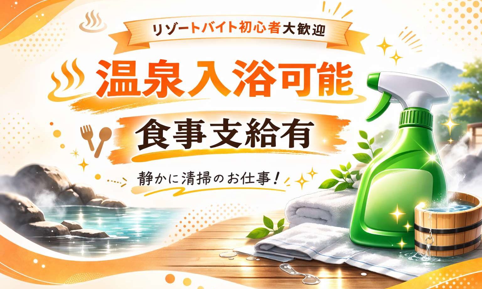 ※浴場とパブリックの巡回清掃です(男女風呂営業中の簡易清掃あり) - 給与