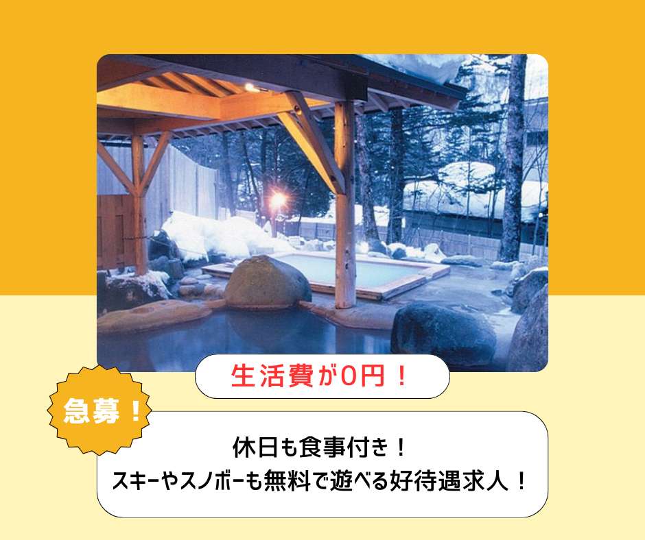 【個室寮!×リフト券4施設無料!×レンタル無料!×未経験大歓迎!】疲れた体を温泉で癒そう!【調理補助スタッフ大募集!】