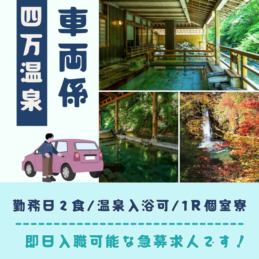 - 赴任交通費支給(上限あり)・寮費無料・水道光熱費無料・wifi完備・通勤交通費支給(上限あり)・前払い制度・賄い付き・社会保険完備・雇用保険完備・労災保険完備