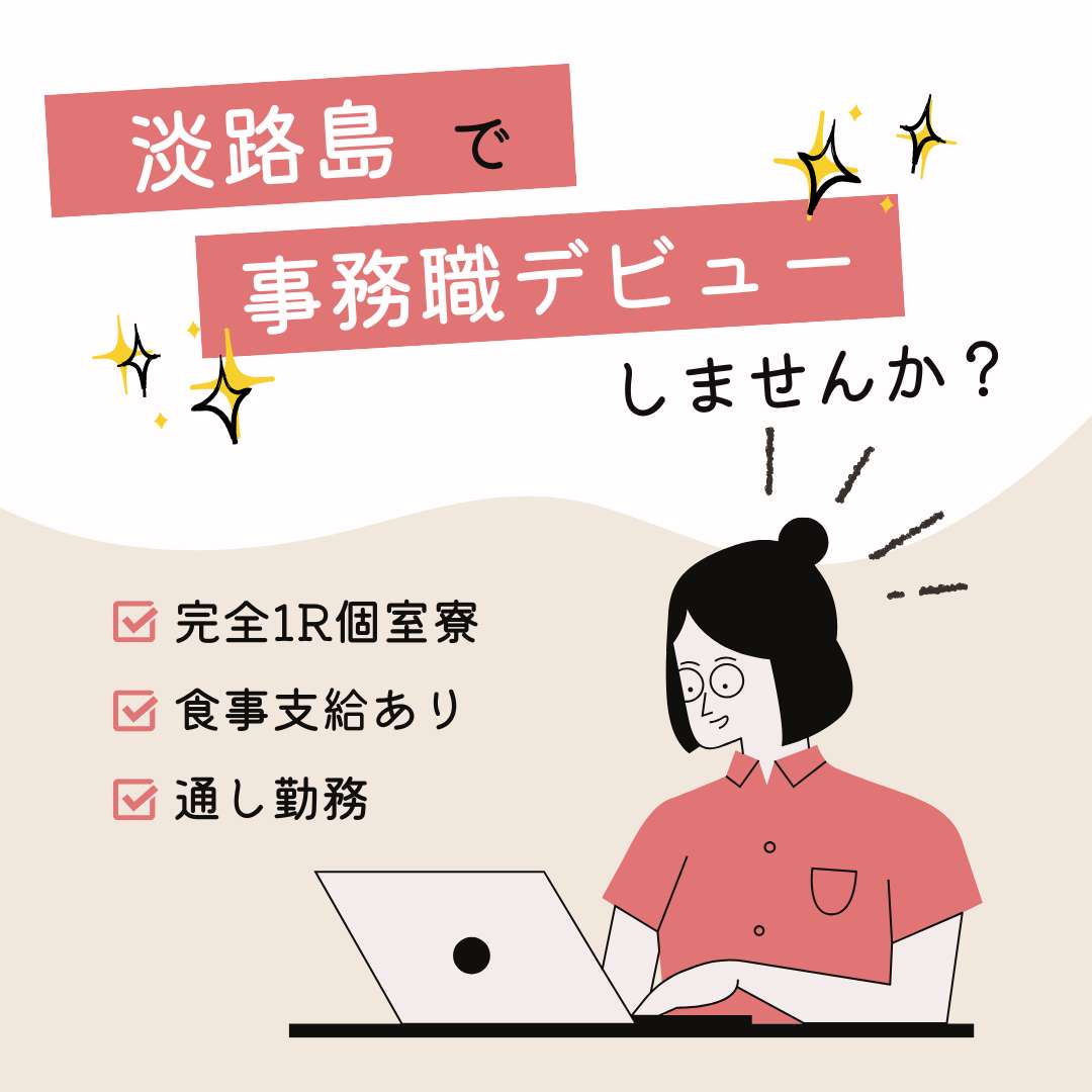 【1R個室寮・完全通し勤務】大阪から最寄りのバスセンターまで2時間!淡路島で事務のお仕事です!お早めにご応募下さい!