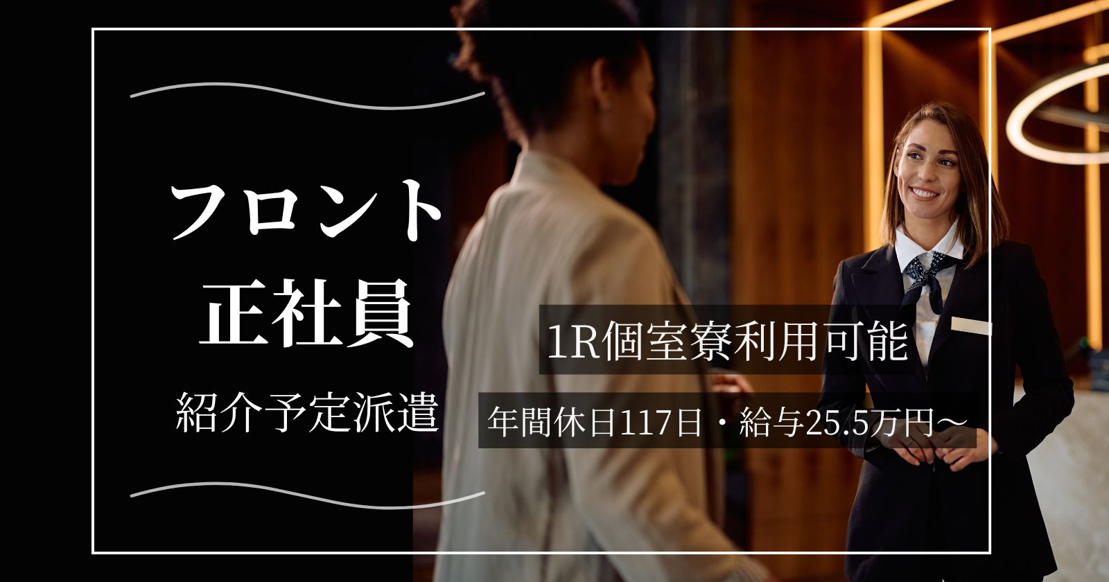 通し勤務!綺麗な客室寮!友人同士歓迎!
