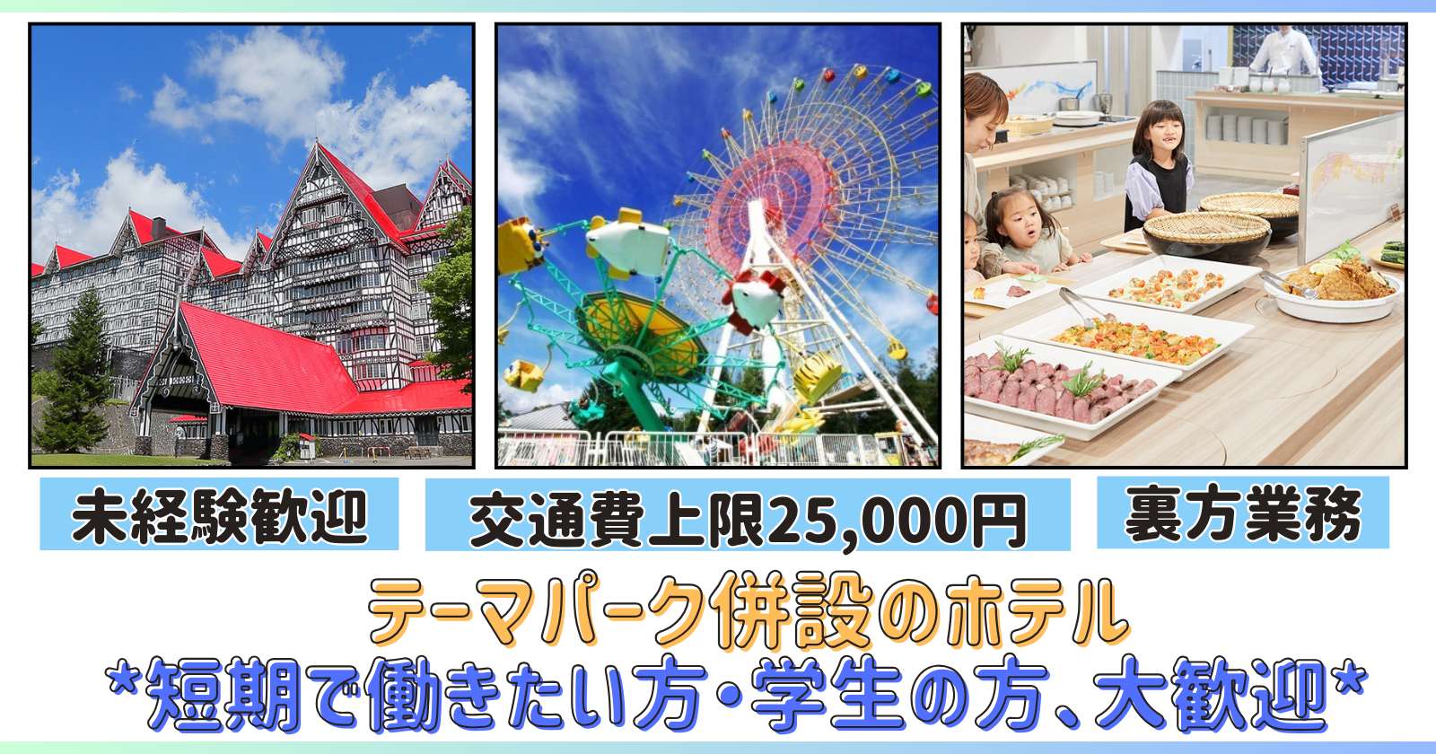 リゾートバイトで途中リタイアをしてしまう2大要素が、完璧にクリアされている求人ですのでふるってご応募ください。