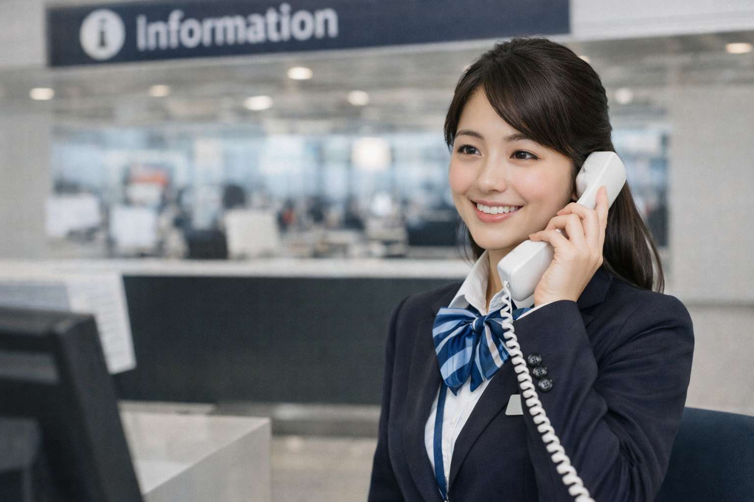 - 空港のインフォメーションカウンターでの旅客案内業務