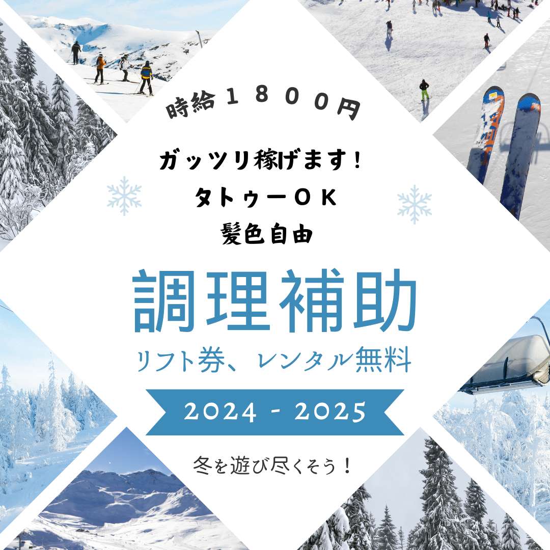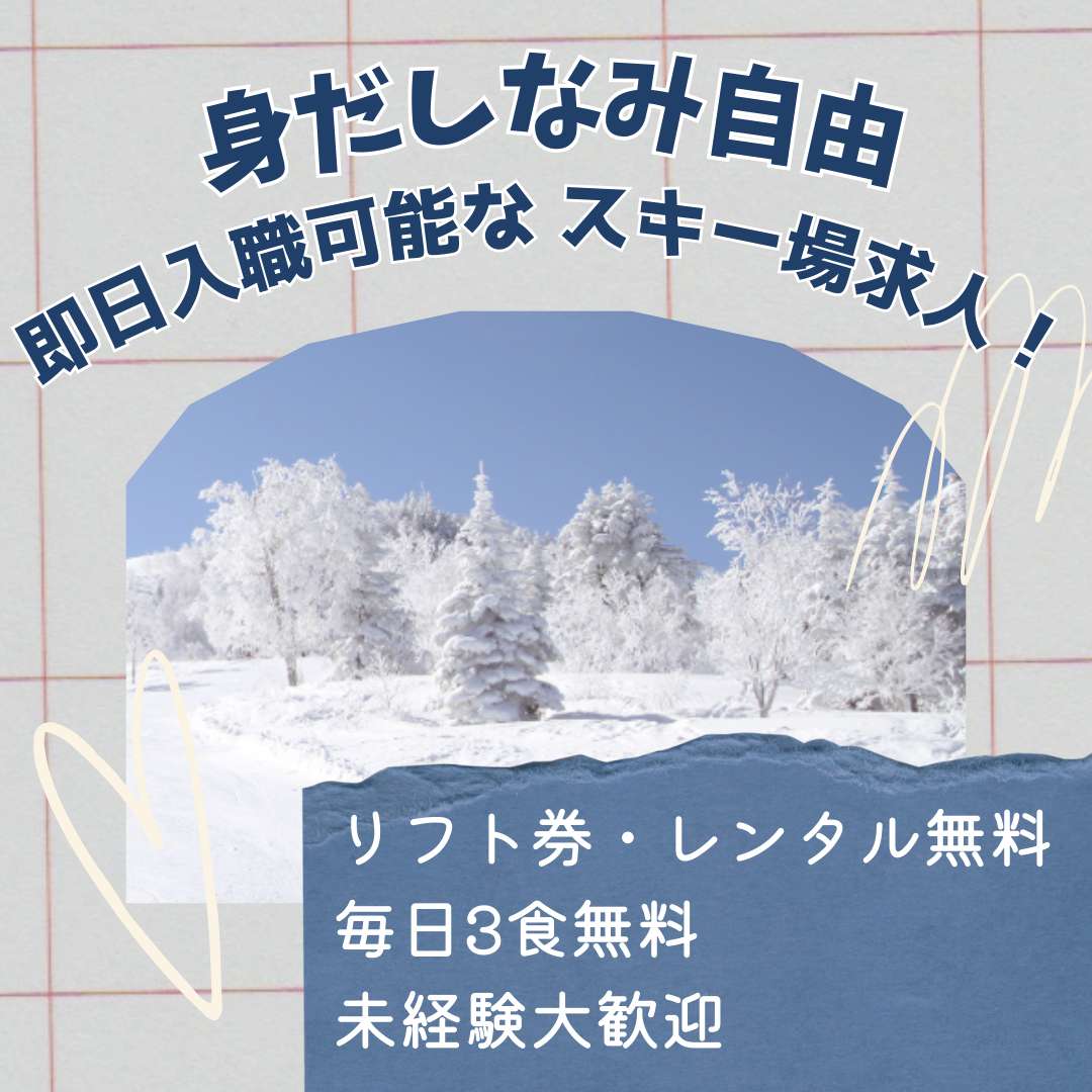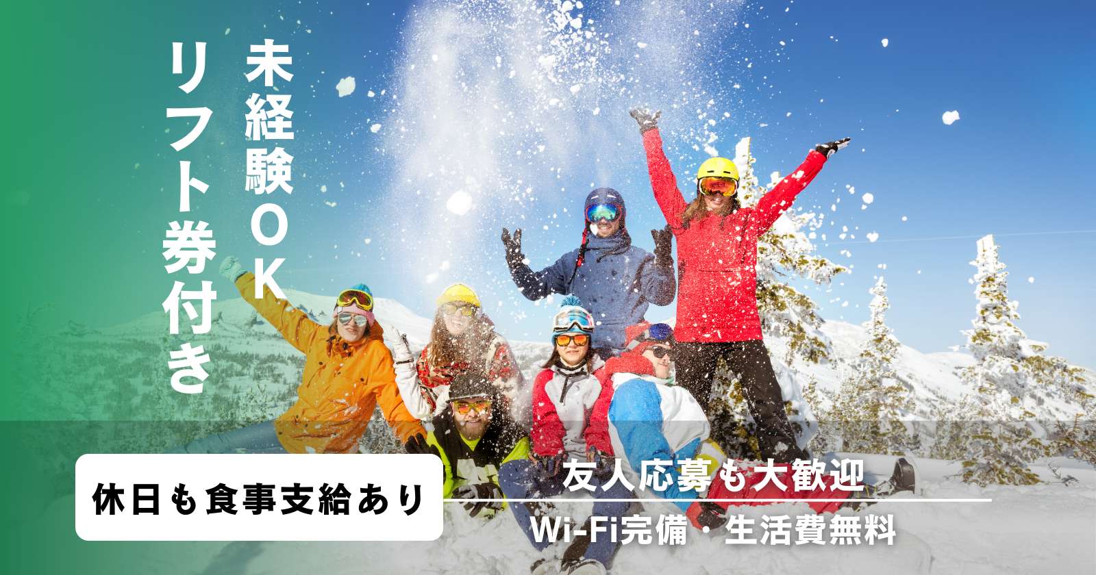 【リフト券、レンタル無料】【高時給】【毎日3食無料!】【大浴場利用可!】