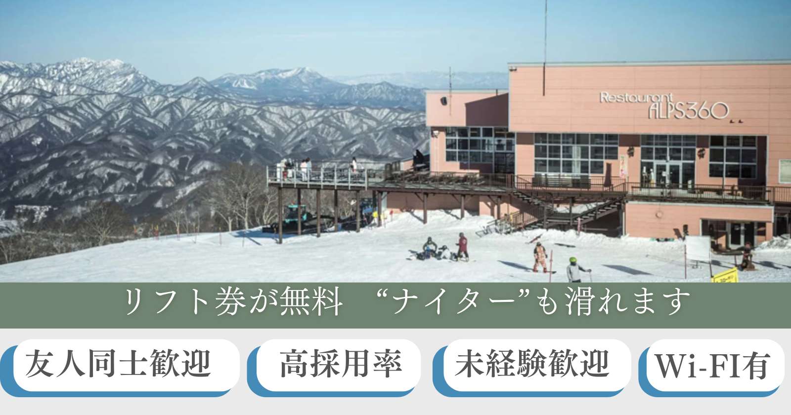 【ナイターあり×寮費無料×リフト券無料×レンタル無料×福利厚生多数】