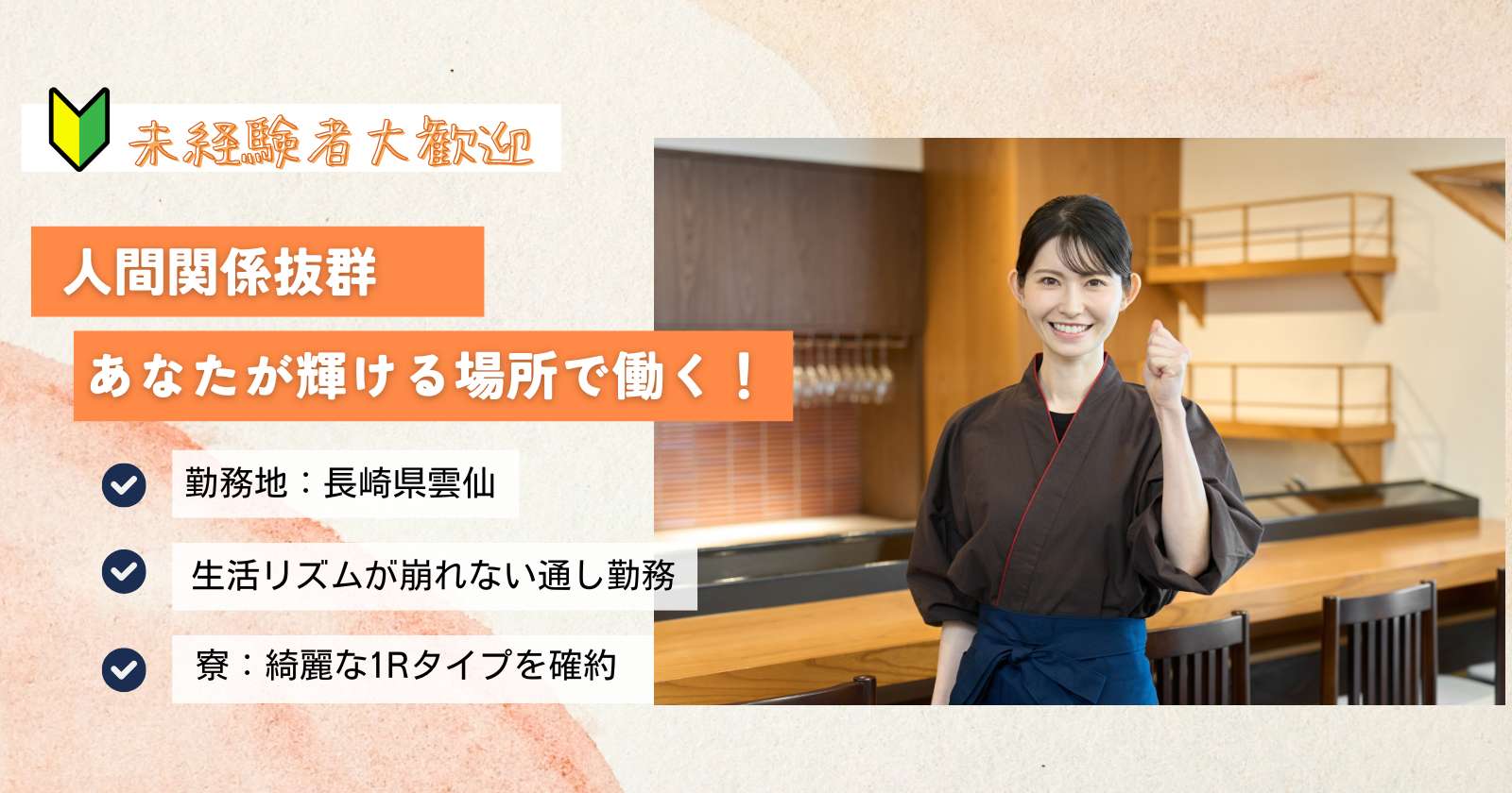 【長崎・雲仙】自然の恵みと温かい仲間!特別な温泉旅館で働きませんか?