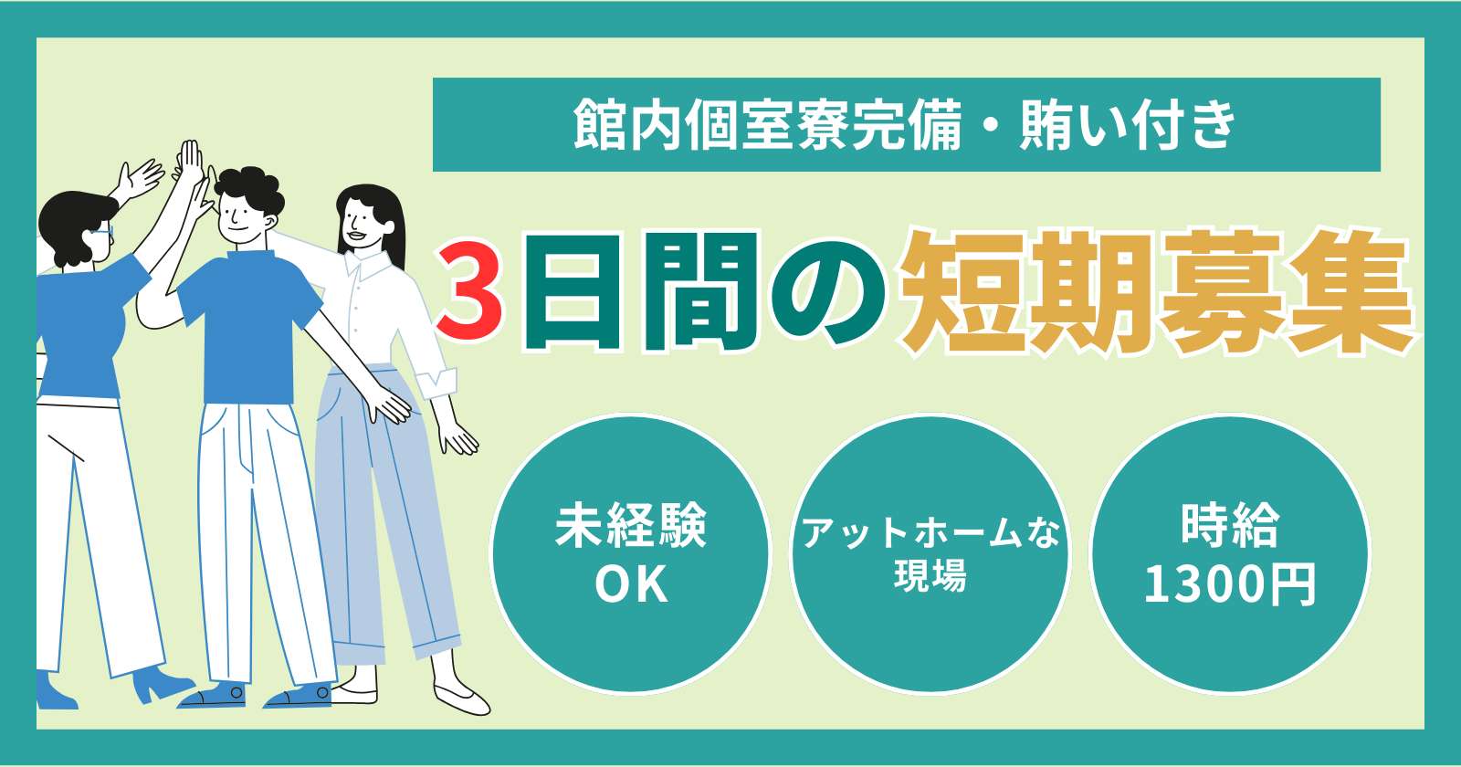 - ●個室寮完備●寮費無料●水光熱費無料●食事無料支給●交通費支給●給与前払い制度あり