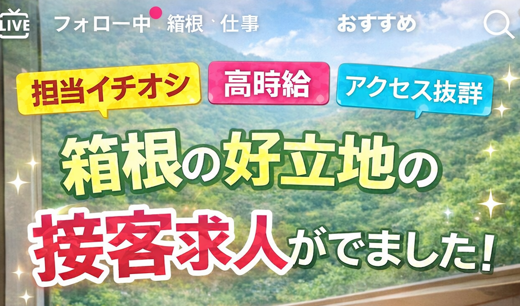 箱根は東京からわずか1時間でアクセス可能な自然と温泉に恵まれた人気エリア!高時給&温泉利用OKの特典付きで、働きながらリラックスできる環境です。