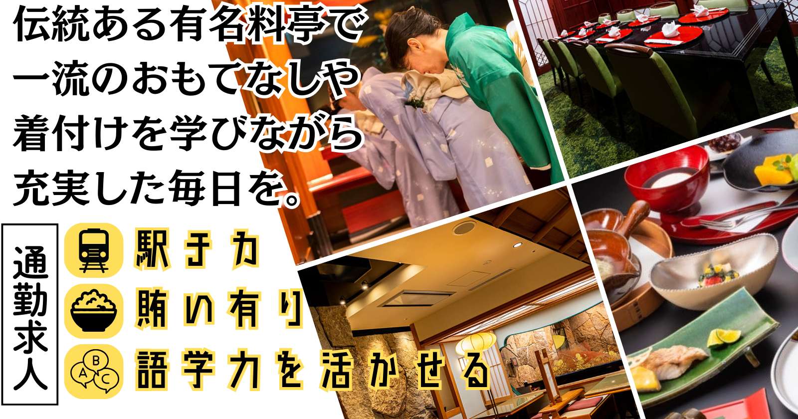 【駅チカ×美味しい賄×学べる着付け×時短勤務相談可】老舗日本料理屋でのホールスタッフ募集