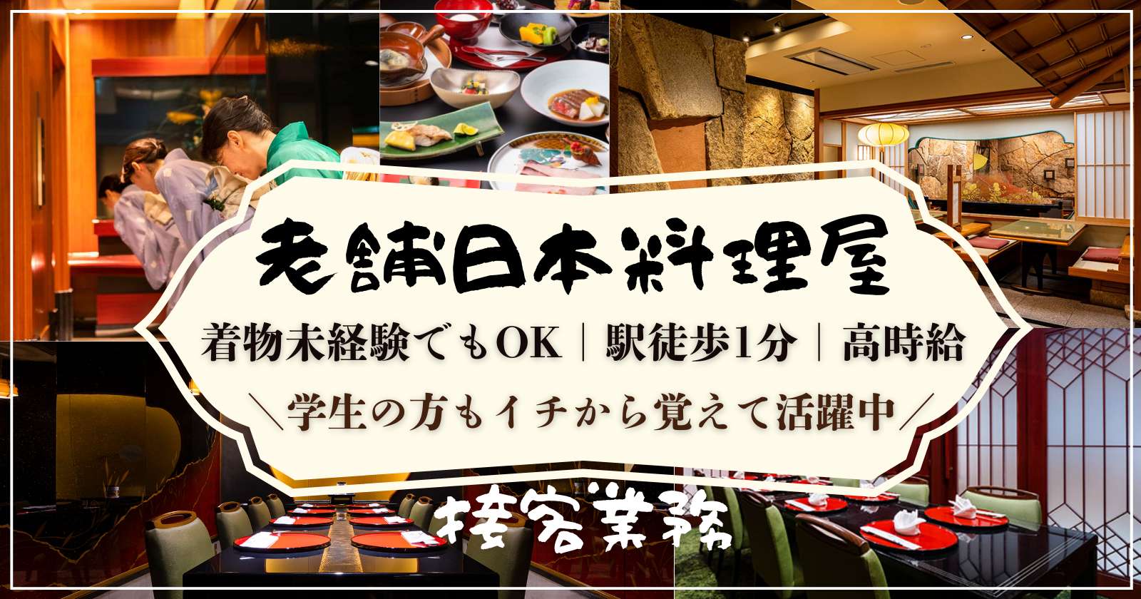 【駅チカ×美味しい賄×学べる着付け×時短勤務相談可】老舗日本料理屋でのホールスタッフ募集