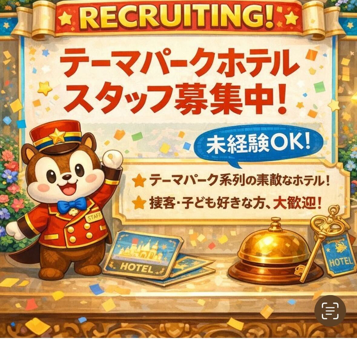 テーマパークに隣接する大型リゾートホテルのお仕事です♪♪
