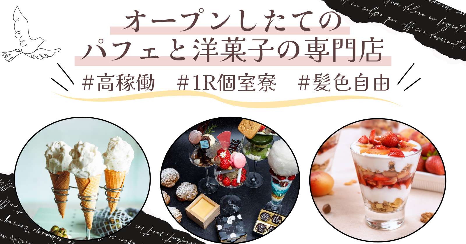 【人気の飲食店求人×パフェと洋菓子の専門店×1R個室寮完備】高稼働で稼げる!早い者勝ちの人気施設!