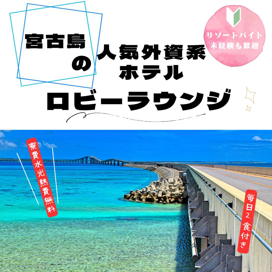 宮古ブルーを望む、世界的に有名な高級ホテルのお仕事です。寮も建てられたばかりなので、綺麗さを保証◎