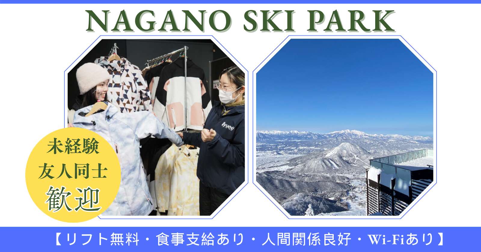 - ●弊社規定往復交通費支給有り ●バイク、車持ち込み可能 ●リフト券無料 ●レンタル無料(年末年始、連休はレンタル不可の場合あり)