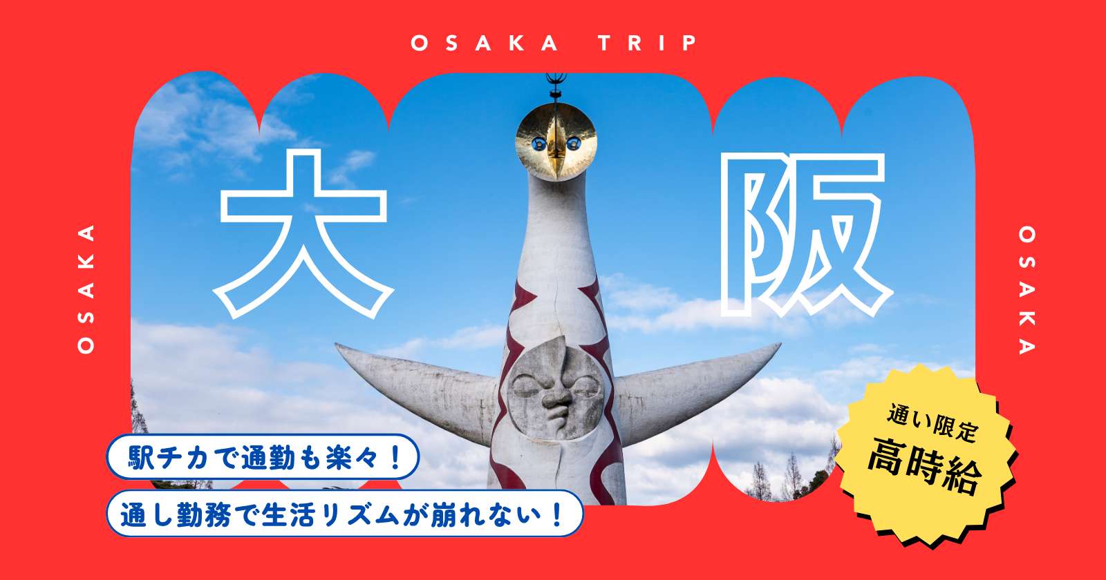 しっかりと稼いで、お休みの日は大阪・京都観光をされたい方にも抜群の立地です。