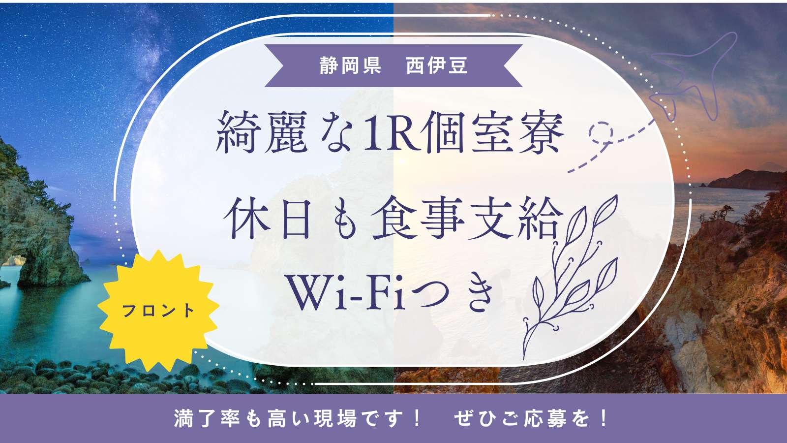 【人間関係良好な抜群の満了率!!】【綺麗なWi-Fiつき1R個室寮】【休日も食事支給!】