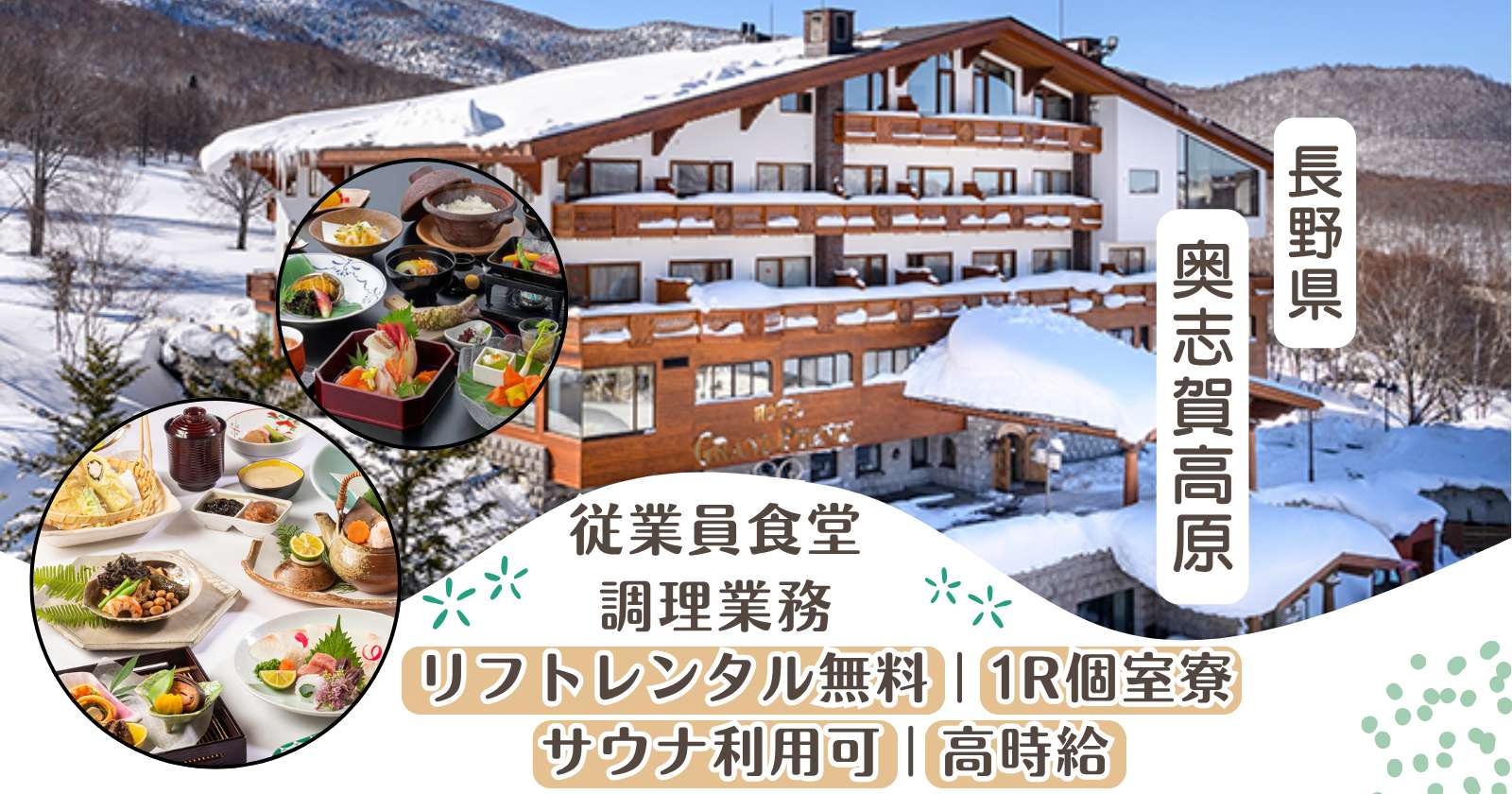 【1R個室寮・リフト券付き&レンタル無料!・高時給】調理経験生かせる、人気求人です!お問合せは今すぐ!!
