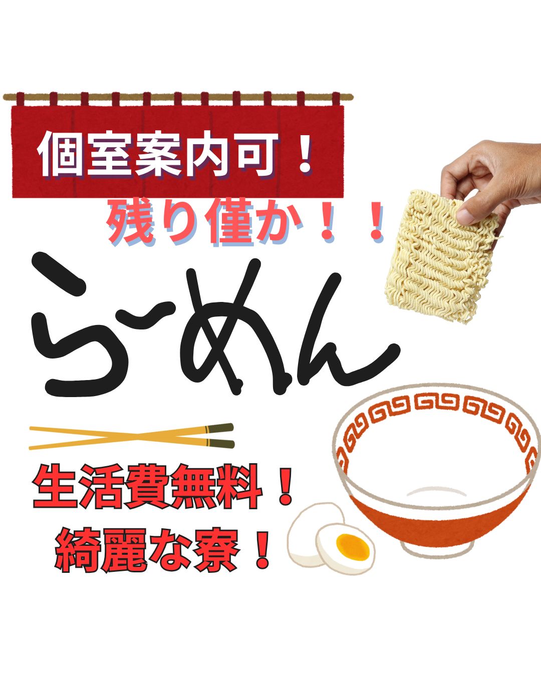 【残りわずか!個室寮案内可!】高時給ラーメン屋さん求人!