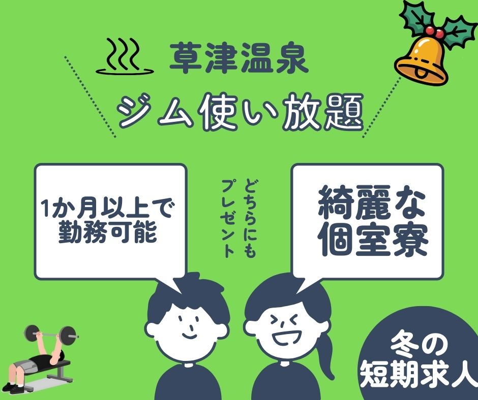 個室寮完備(徒歩3〜15分)・駐車場あり・Wi-Fiありと生活環境が整った働きやすい職場です。ホテル業務全般を幅広く経験でき、年末年始の繁忙期でしっかり実務スキルを身につけられます。短期でも安心して働けるサポート体制が整っています。