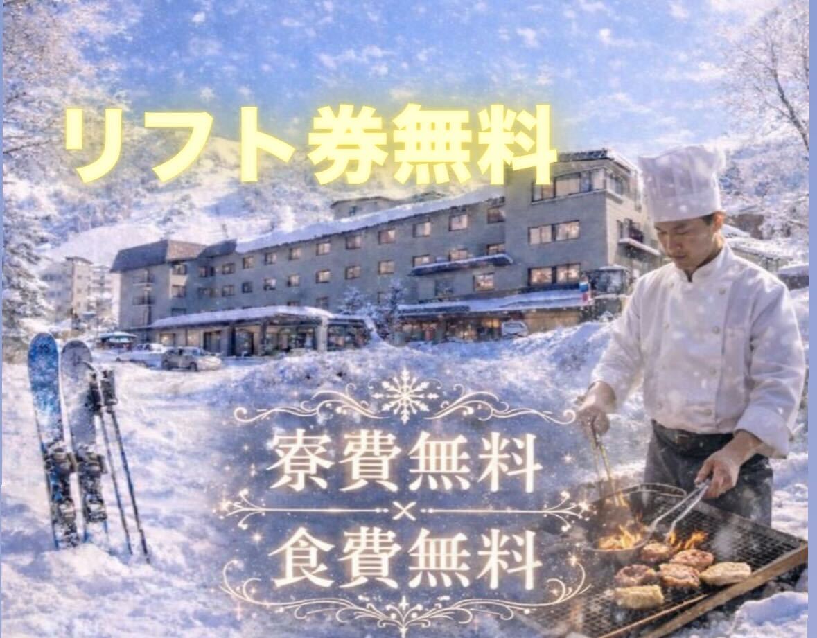 - 満了手当有り・WIFI完備・食事毎日×3食支給有り・水光熱費無料 ・往復交通費支給有り(期間満了者のみ、住んでるエリアによって金額決定)・リフト無料・その他福利厚生有り・温泉利用可