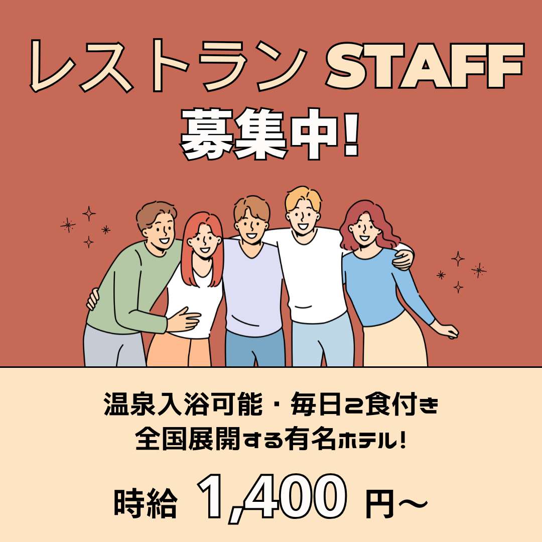 【福利厚生多数・温泉利用可能・高時給】日本国内でも随一のホテルグループでの勤務となります。毎日2食付きの最高な特典つき!